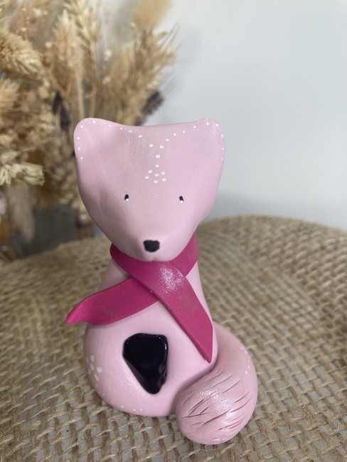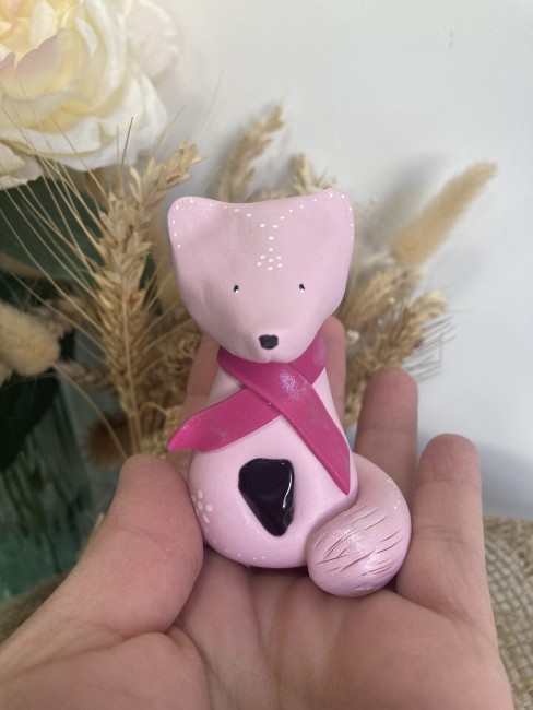 Renard Porte-bonheur modelé à la main, pour Octobre Rose.