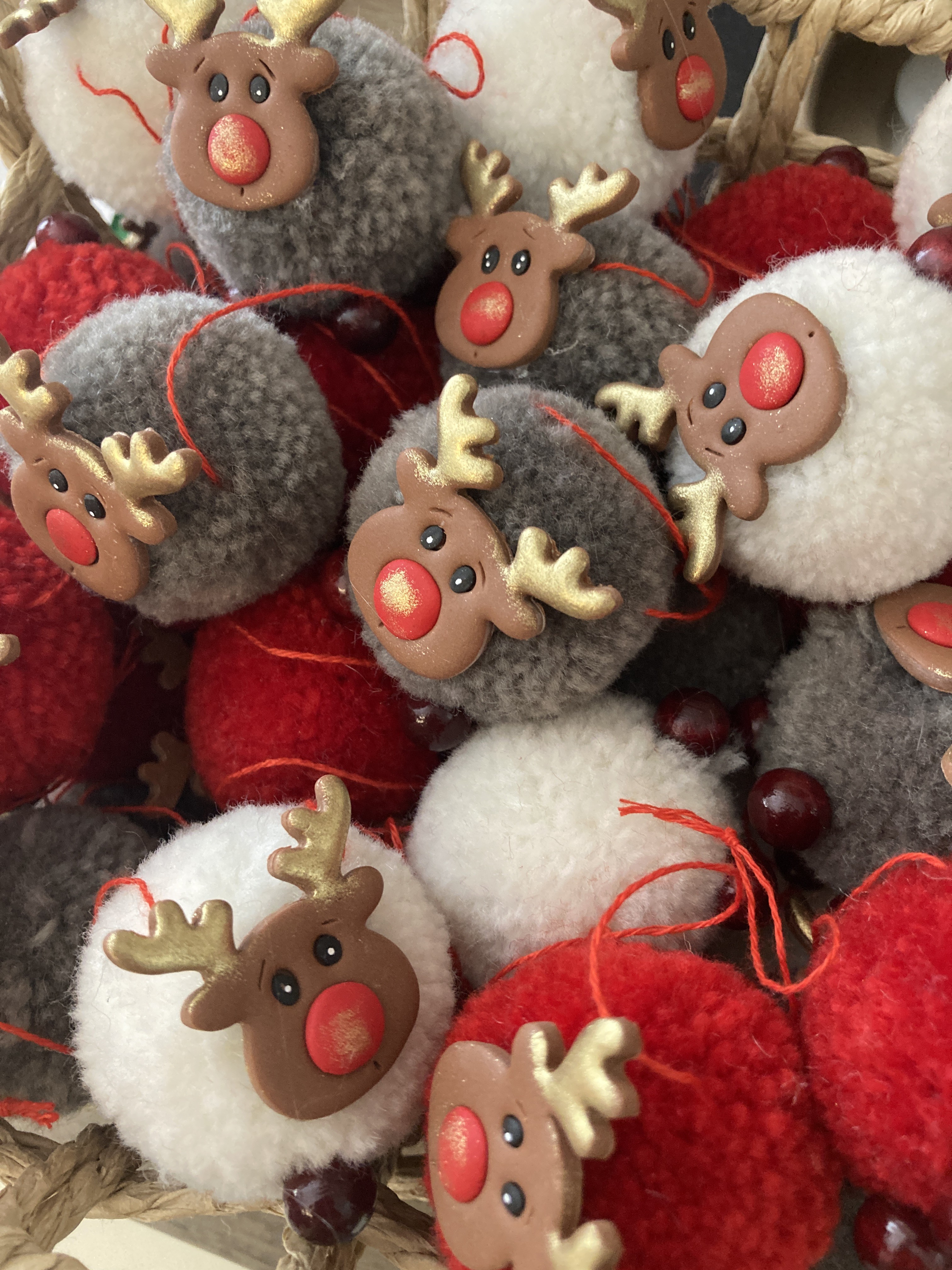 Apportez une touche de douceur et de fantaisie à votre décoration de Noël avec nos adorables mini rennes pompons !