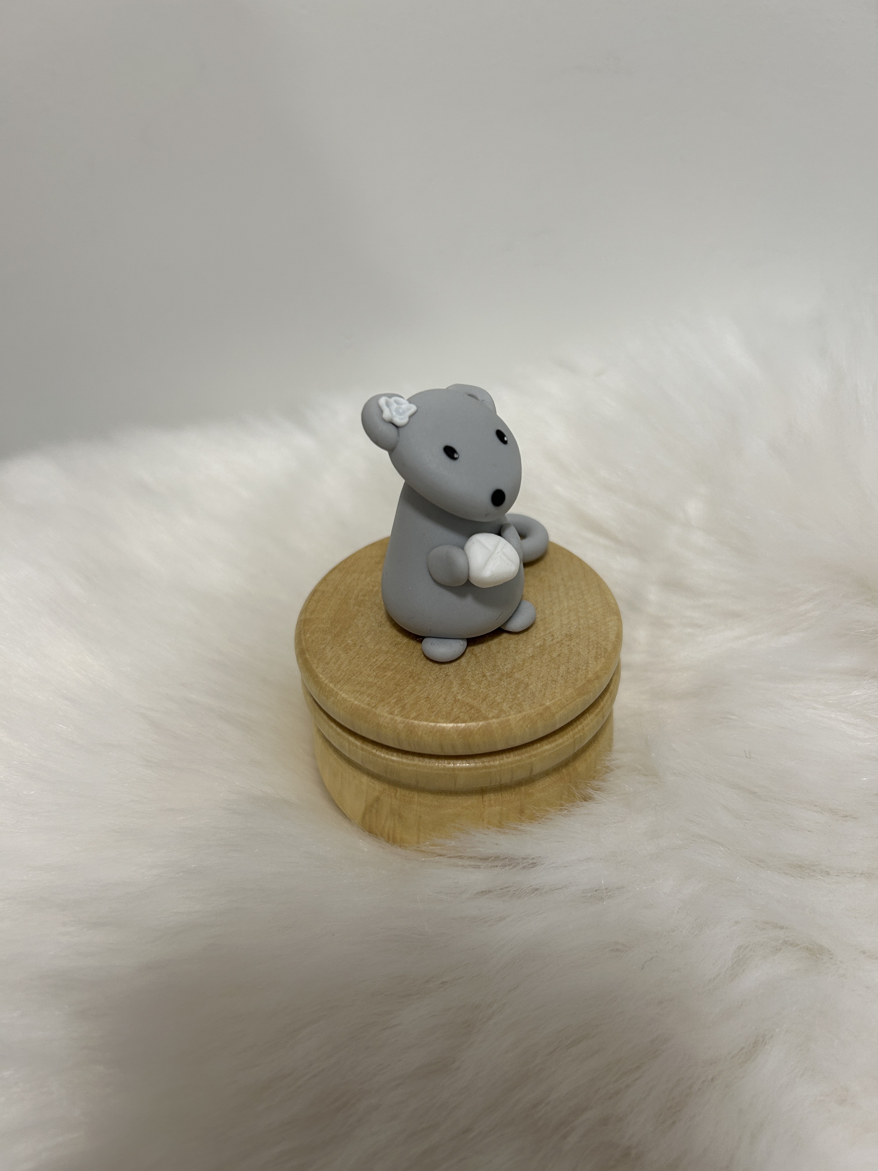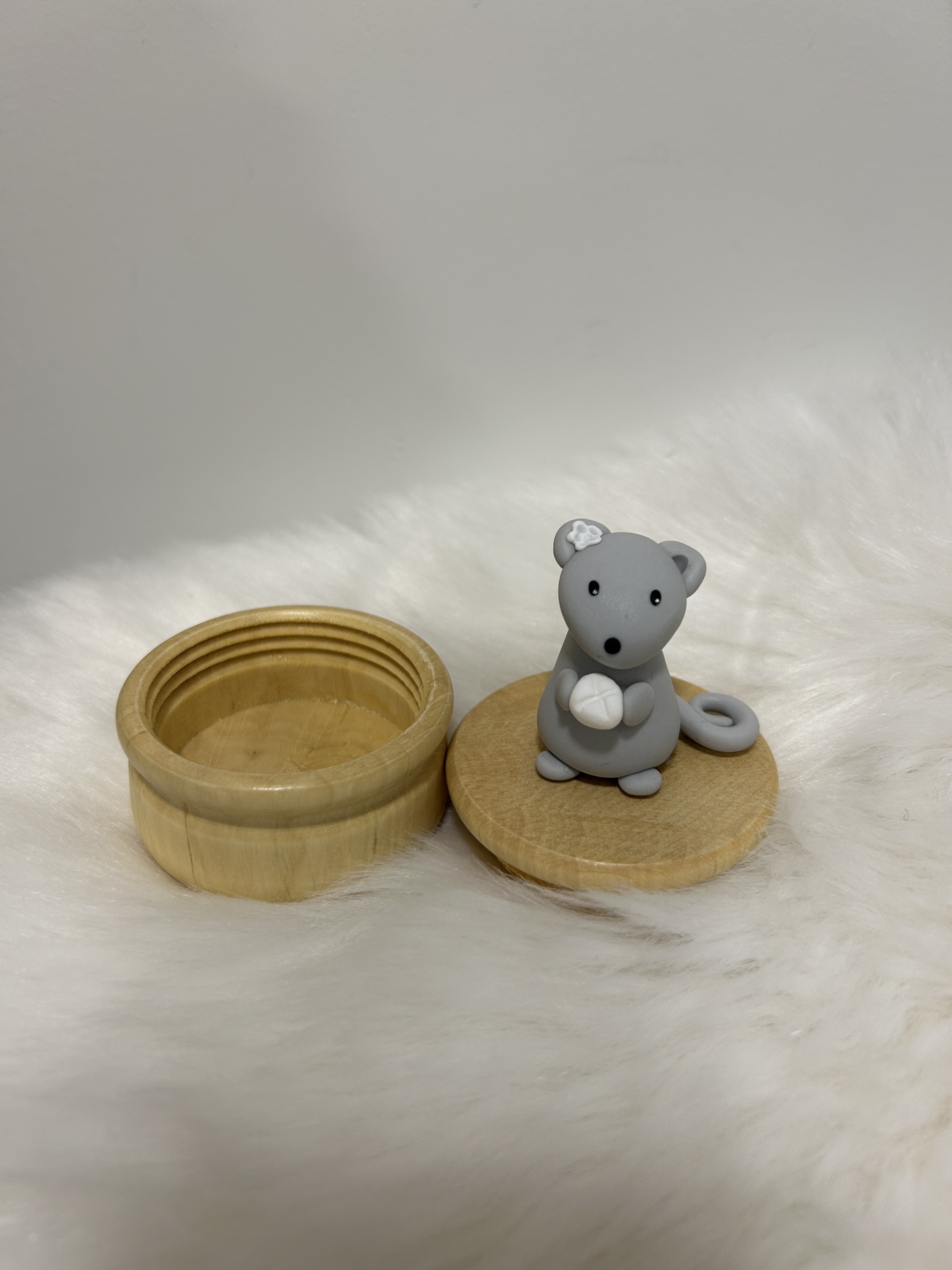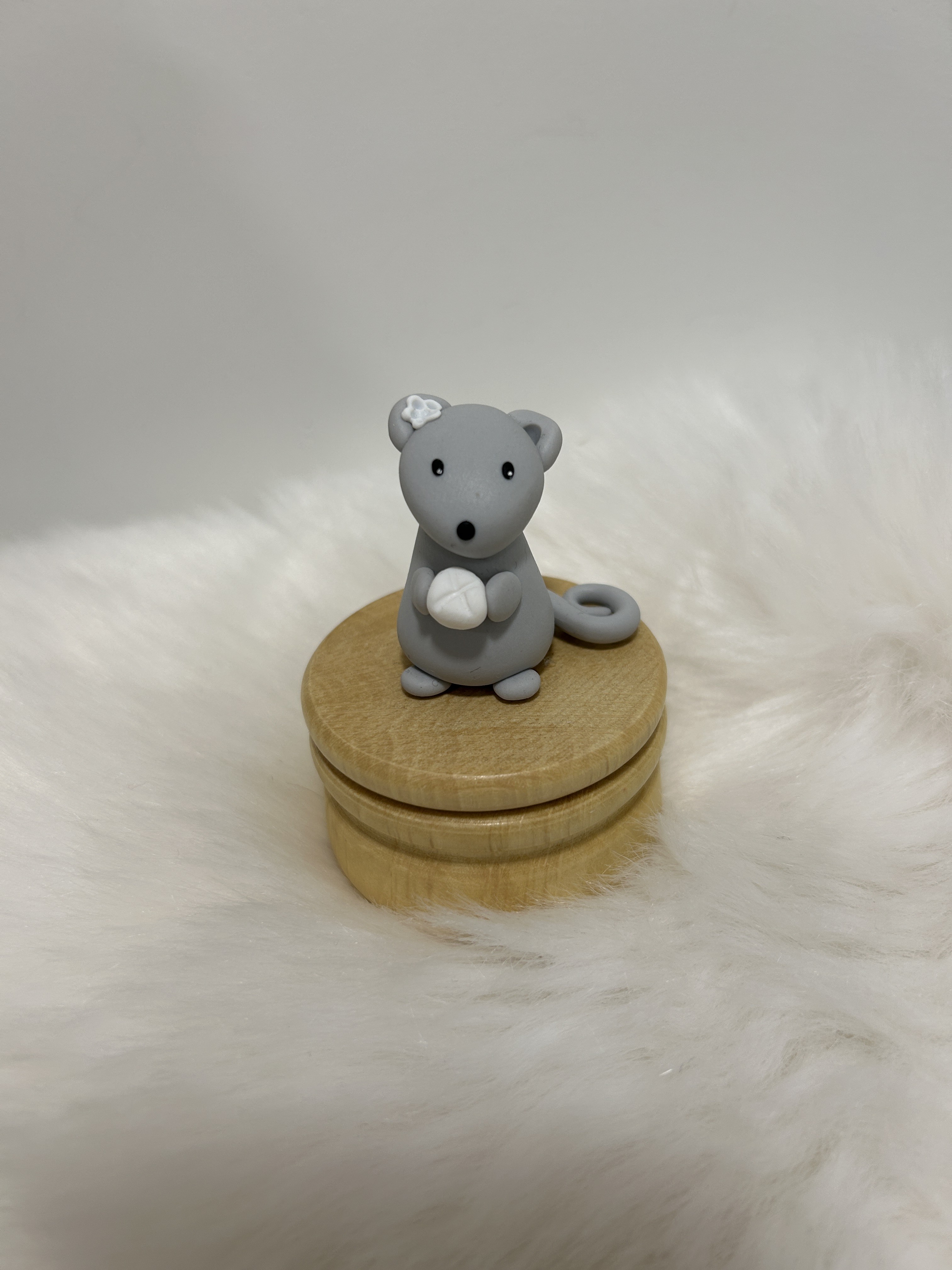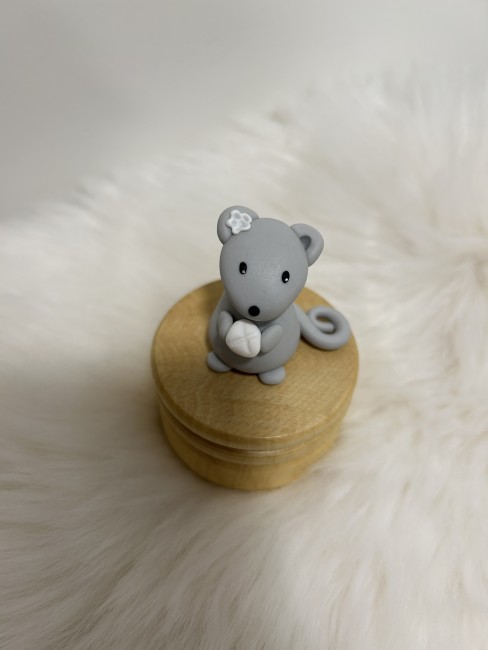 Sa souris et sa petite dent, modelée à la main dans l’atelier Fimottine, veille avec douceur sur les souvenirs de vos tout-petits.