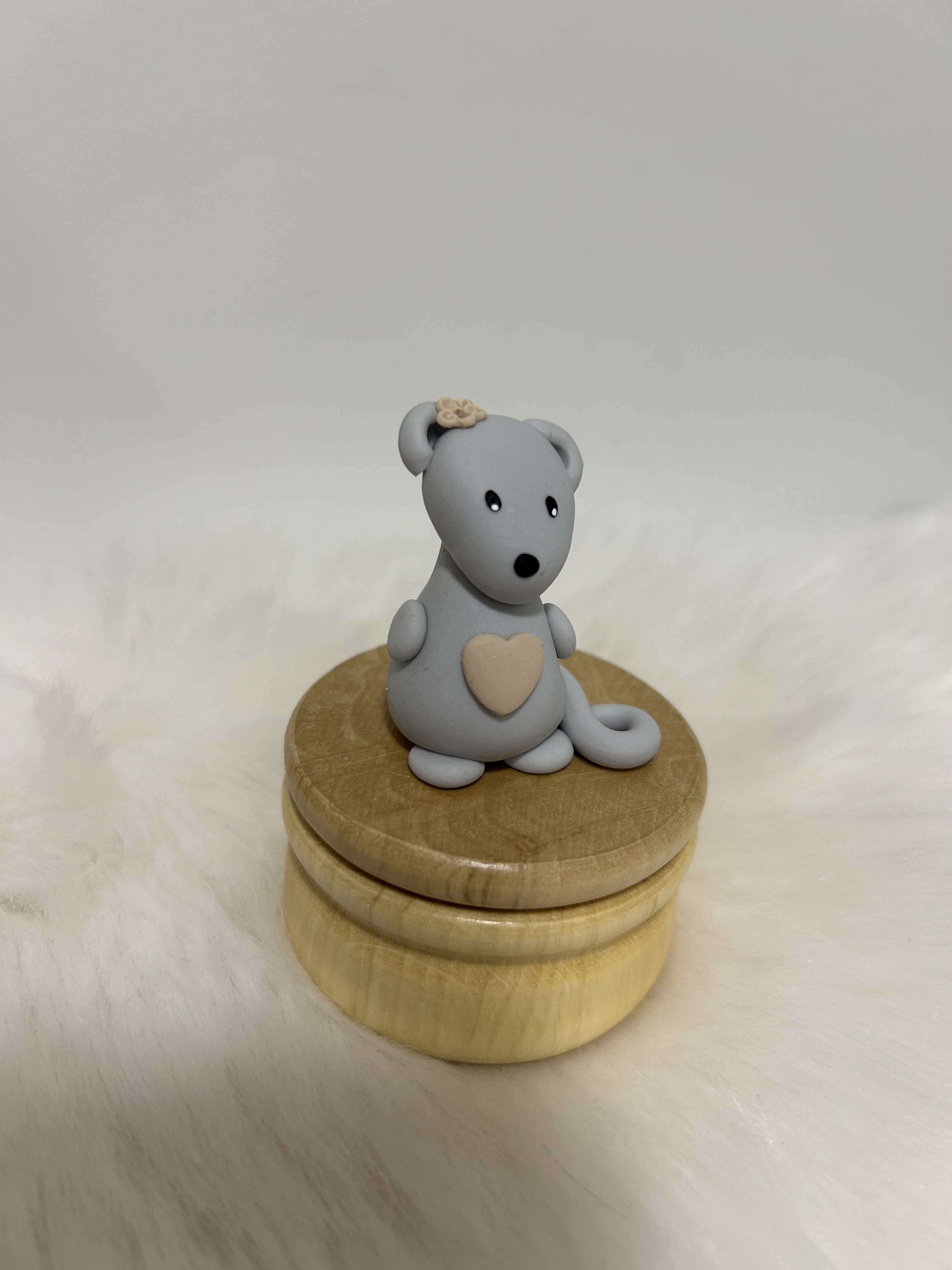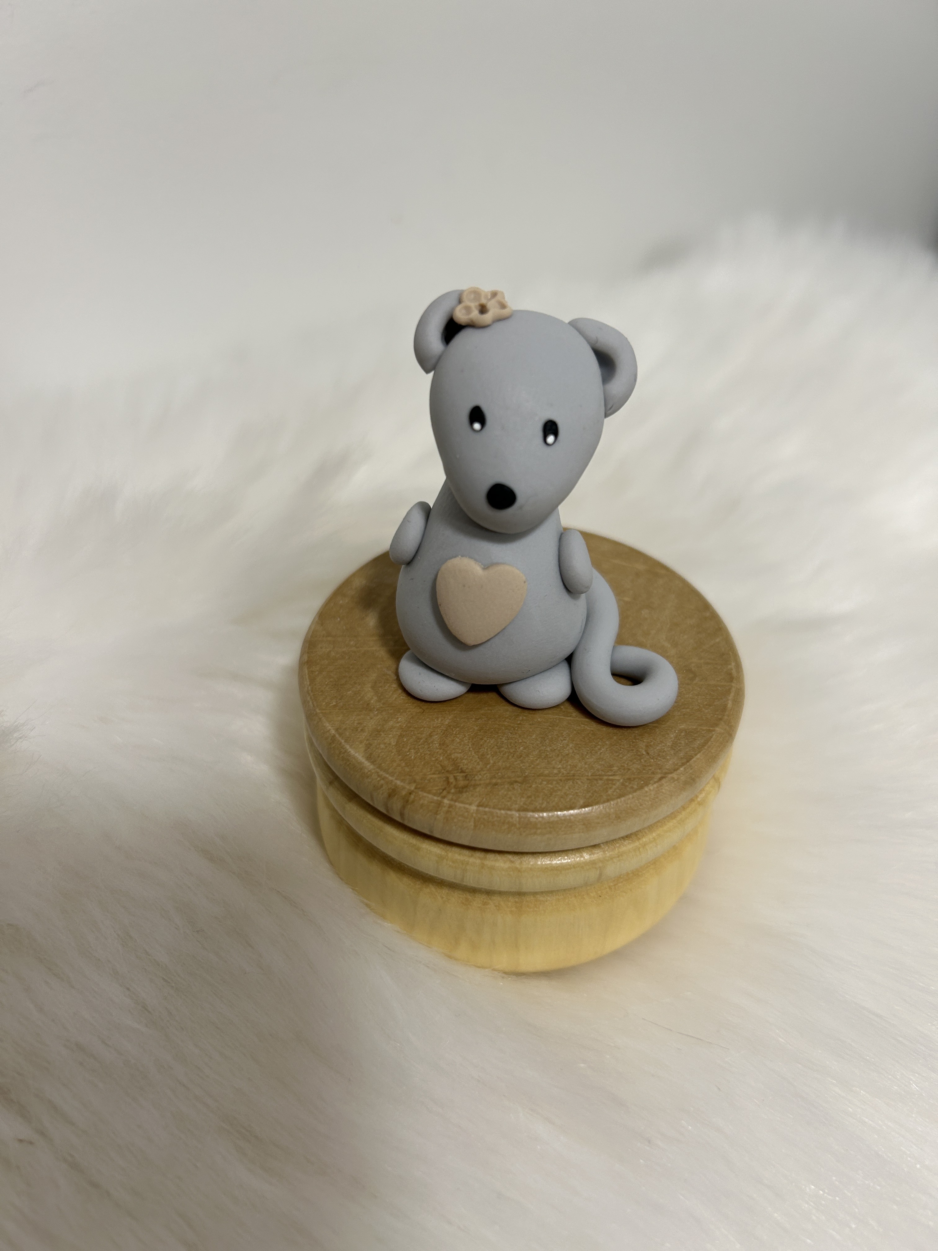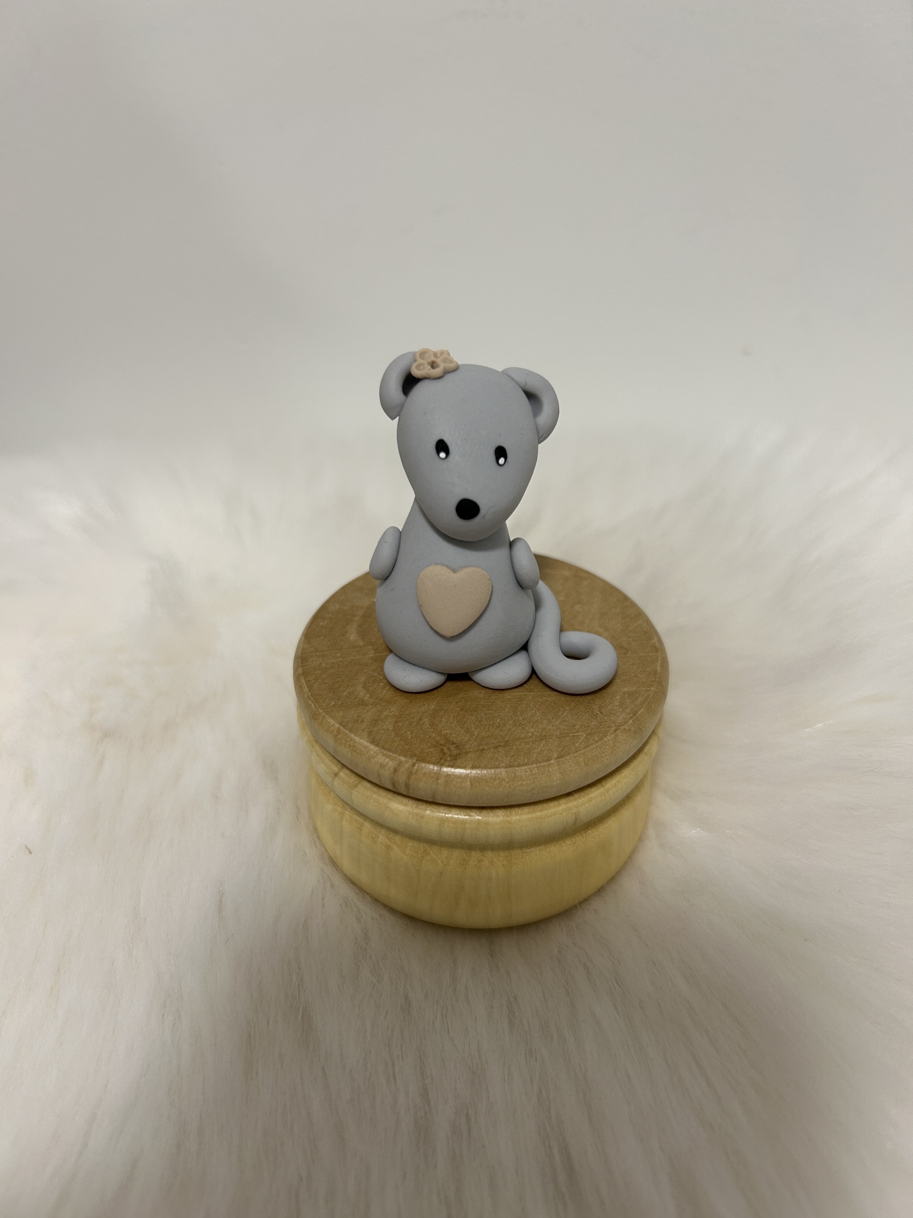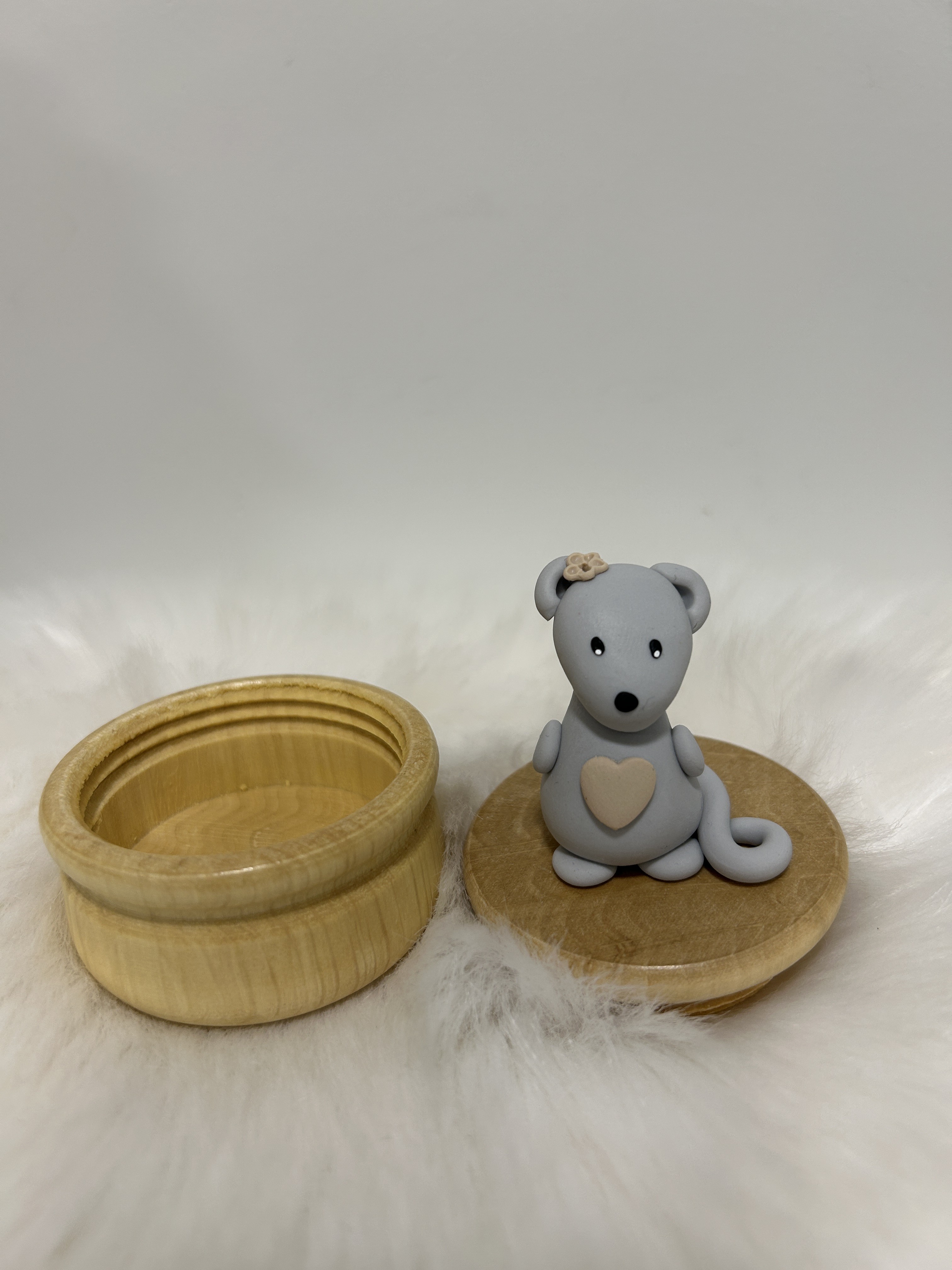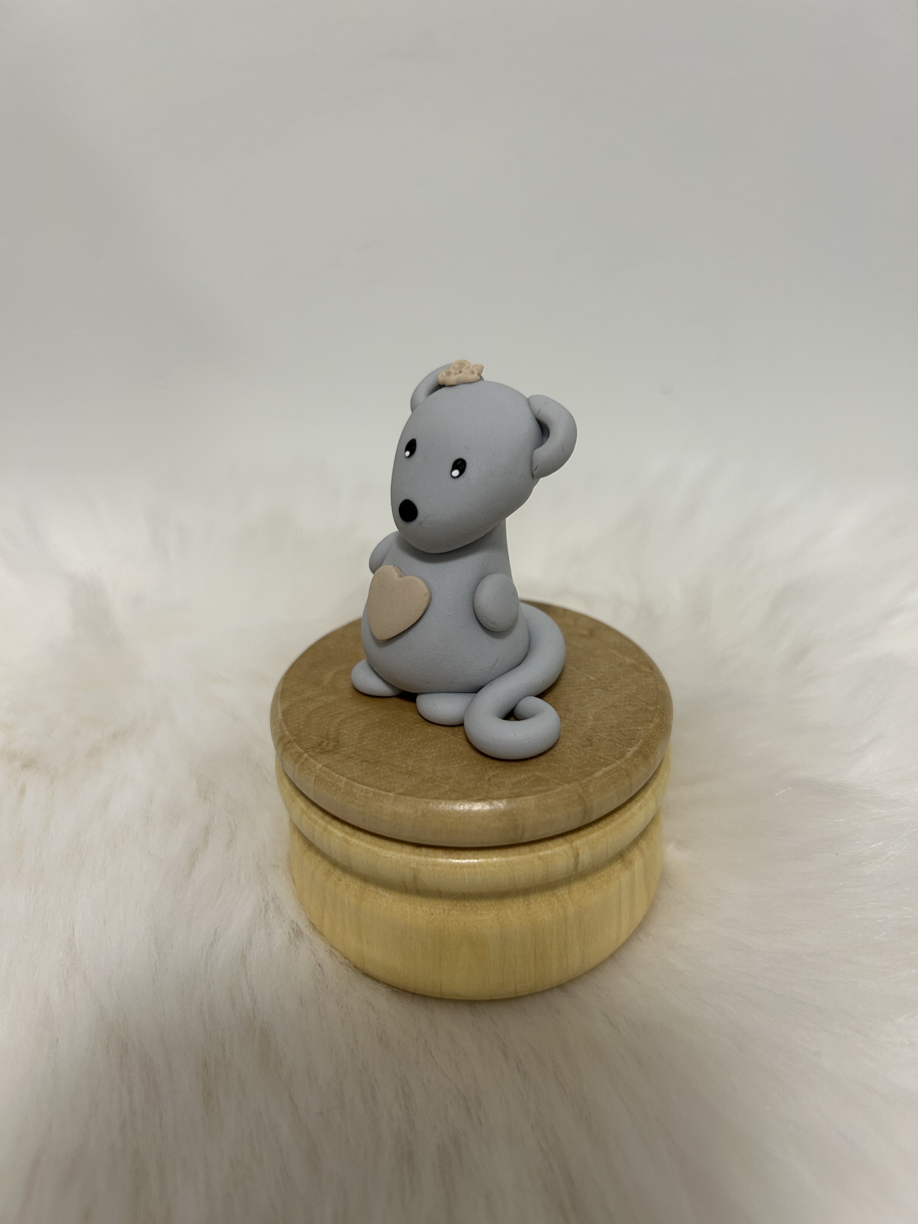 Sa souris au grand coeur, modelée à la main dans l’atelier Fimottine, veille avec douceur sur les souvenirs de vos tout-petits.