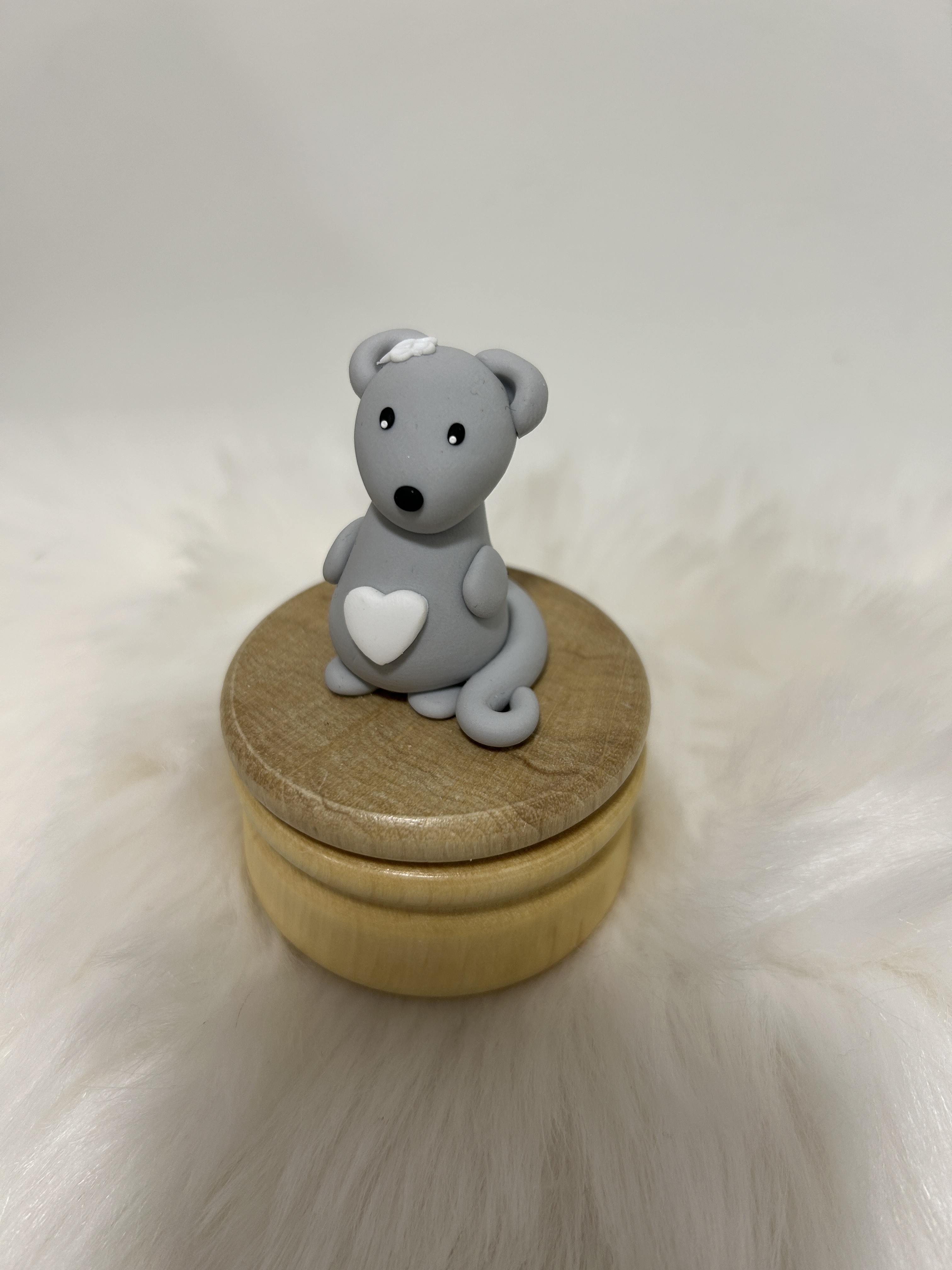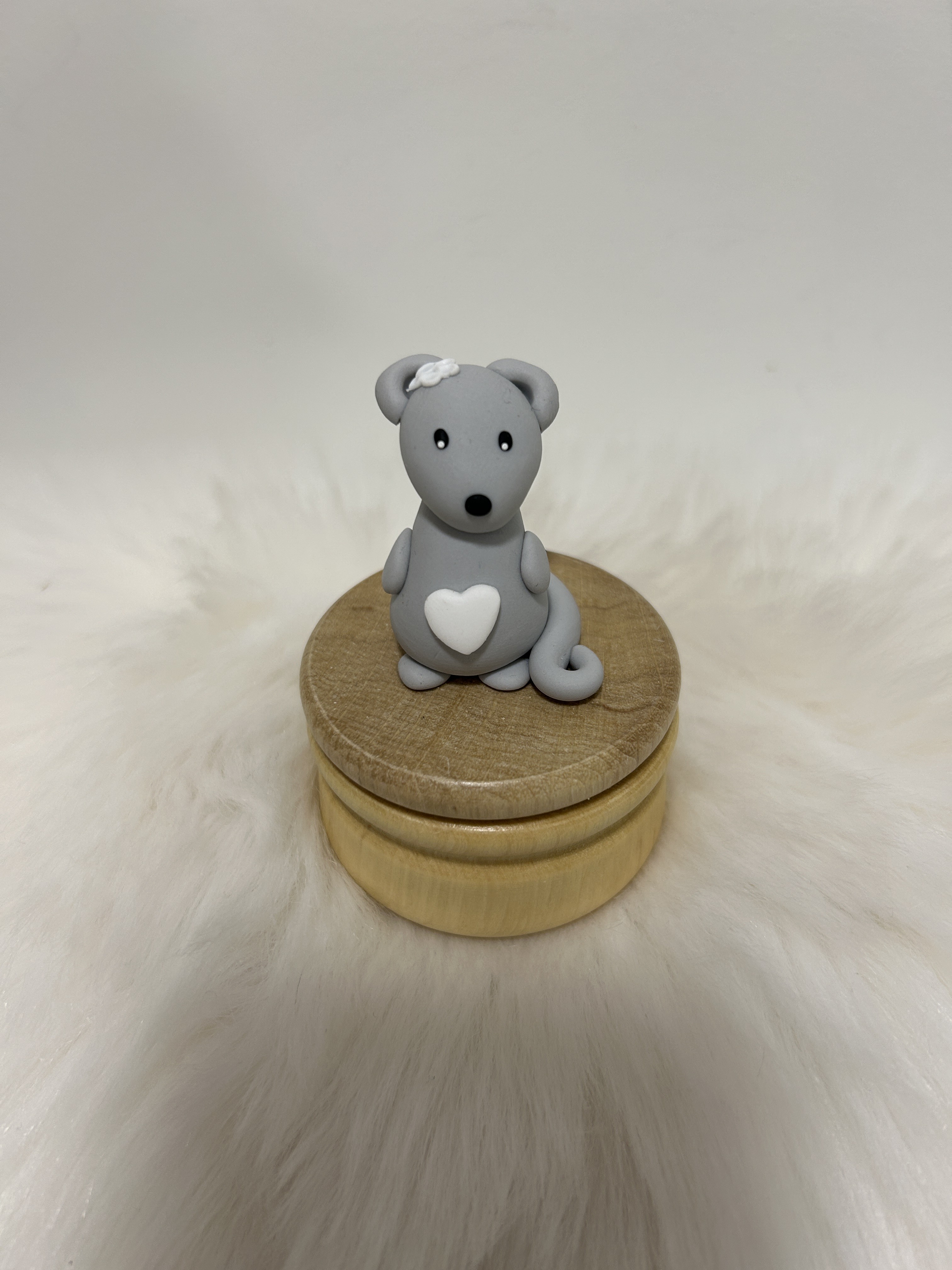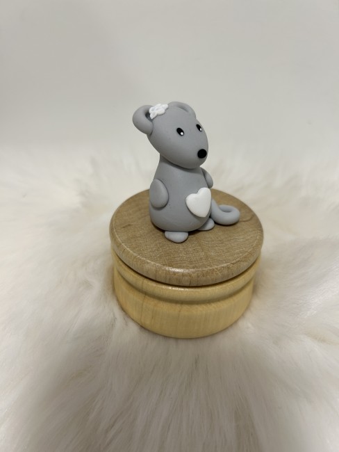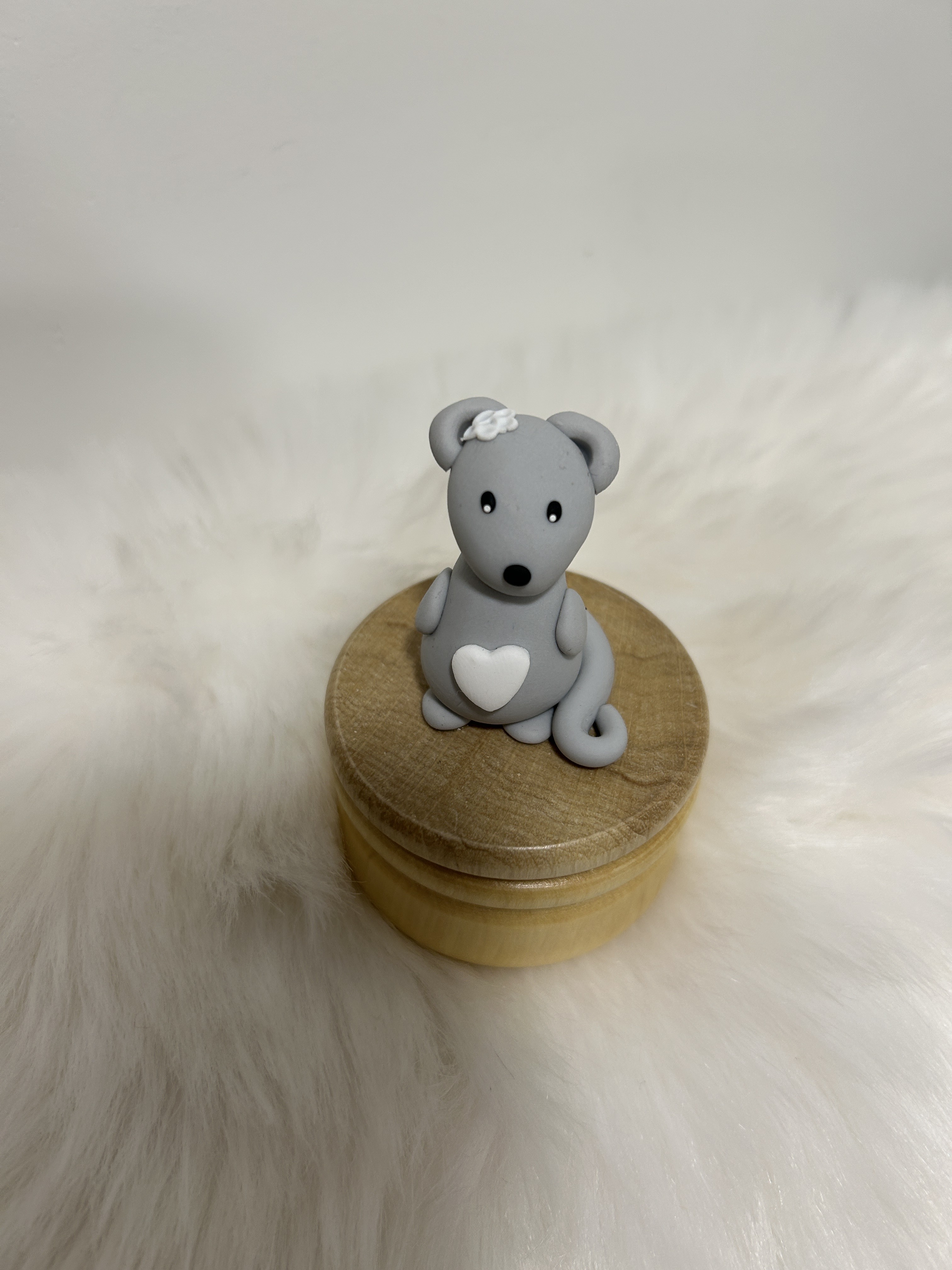 Sa souris au grand coeur, modelée à la main dans l’atelier Fimottine, veille avec douceur sur les souvenirs de vos tout-petits.
