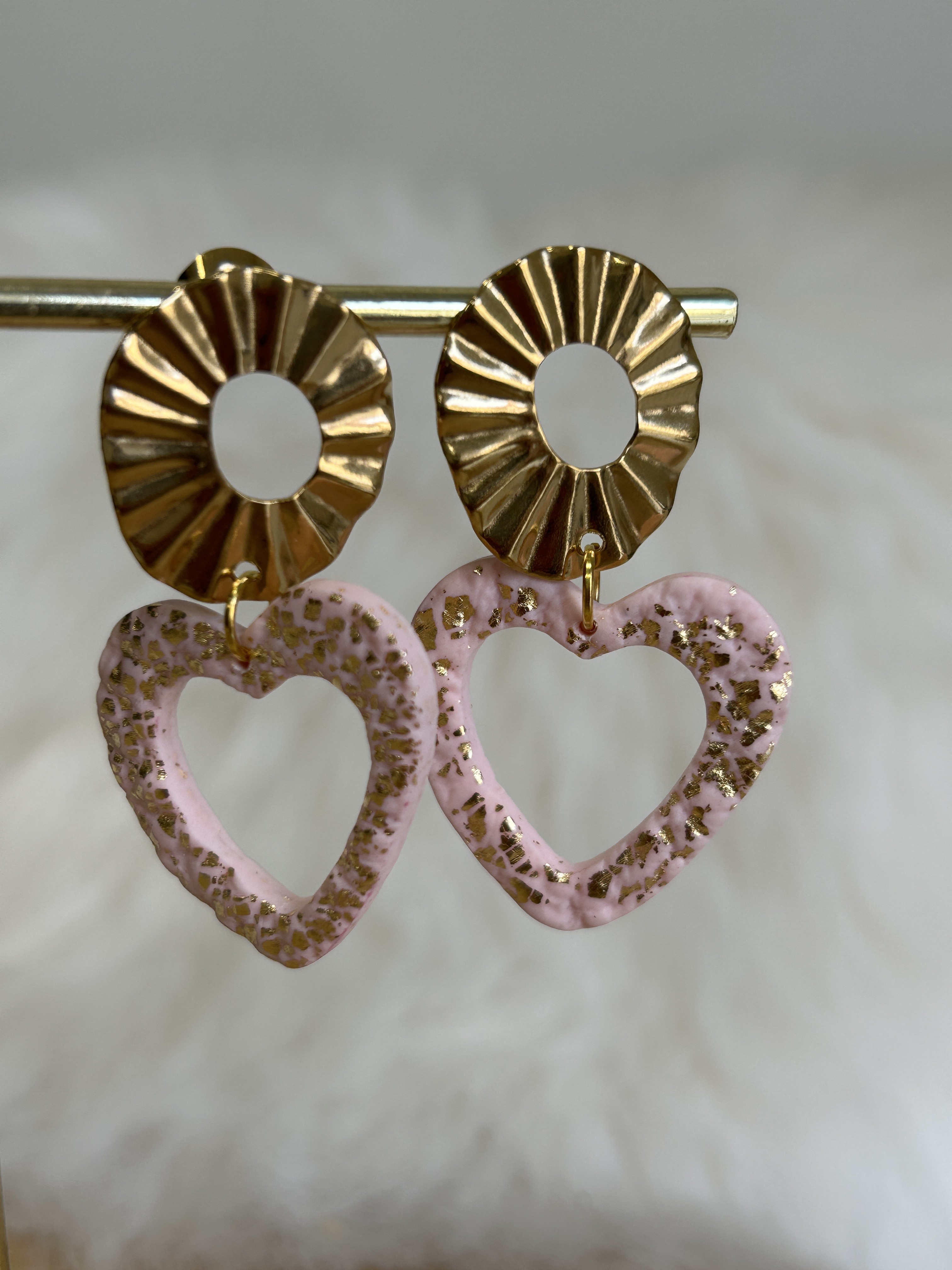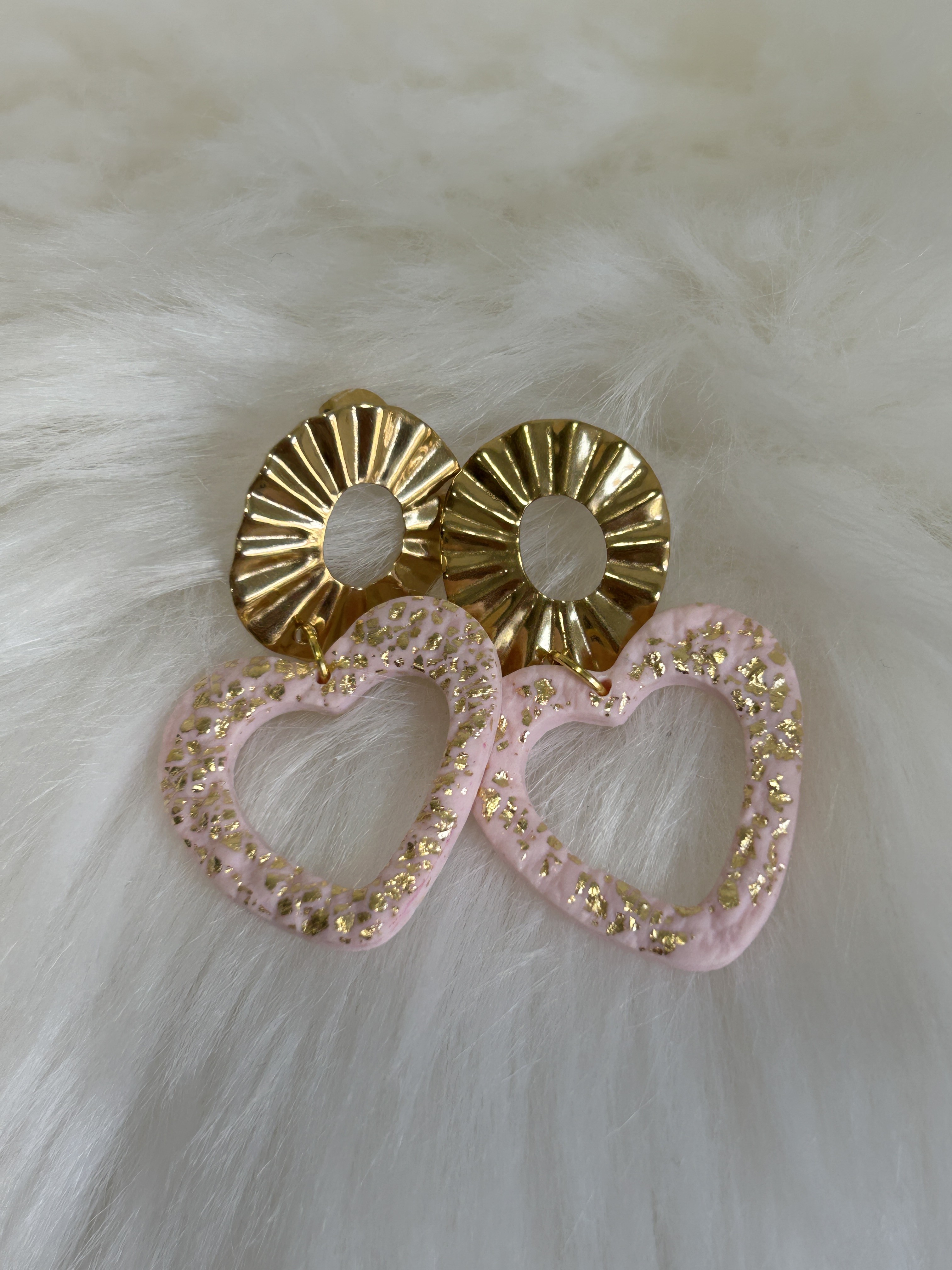 Cœurs roses texturés avec incrustations dorées, en pate polymère