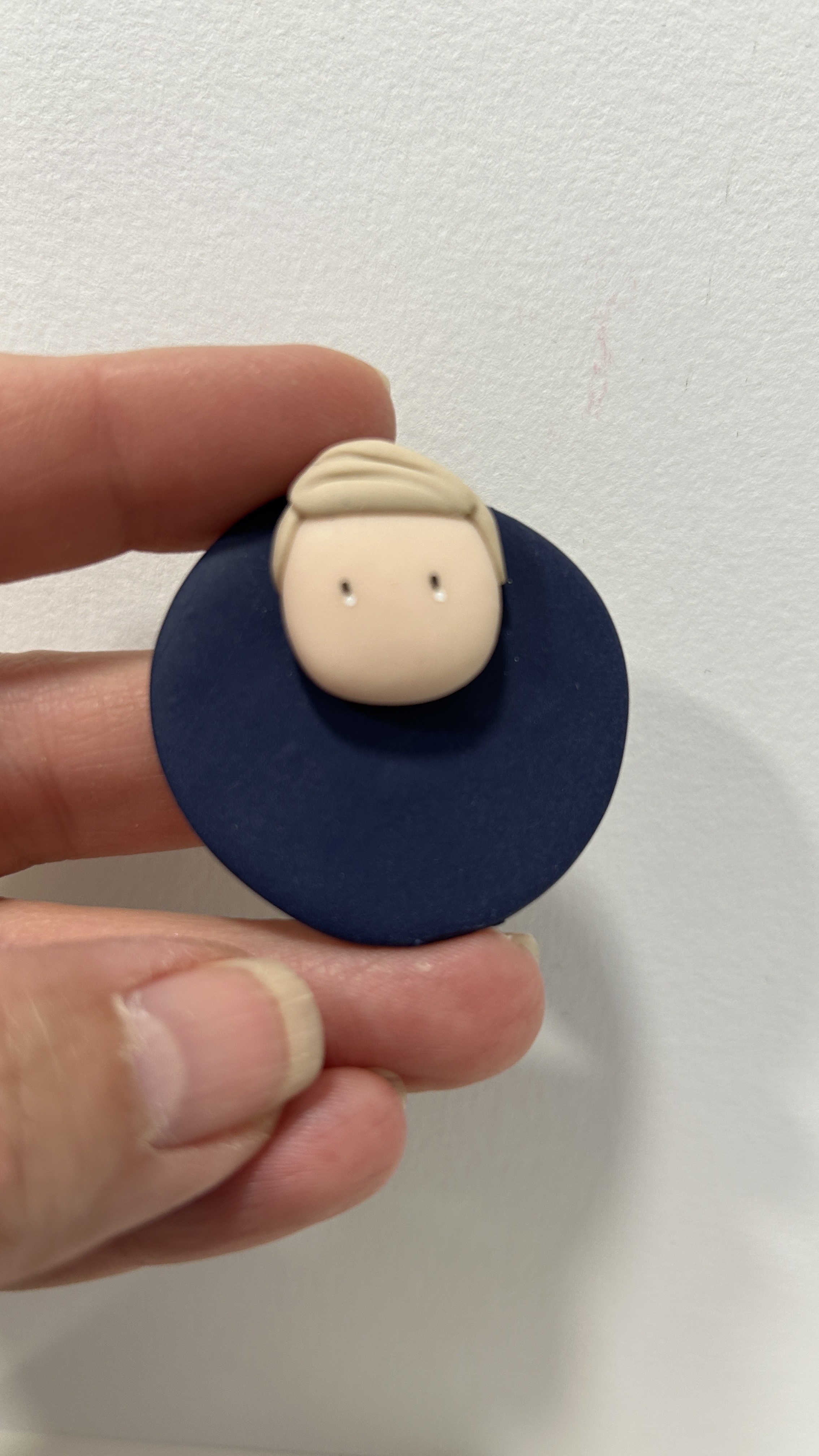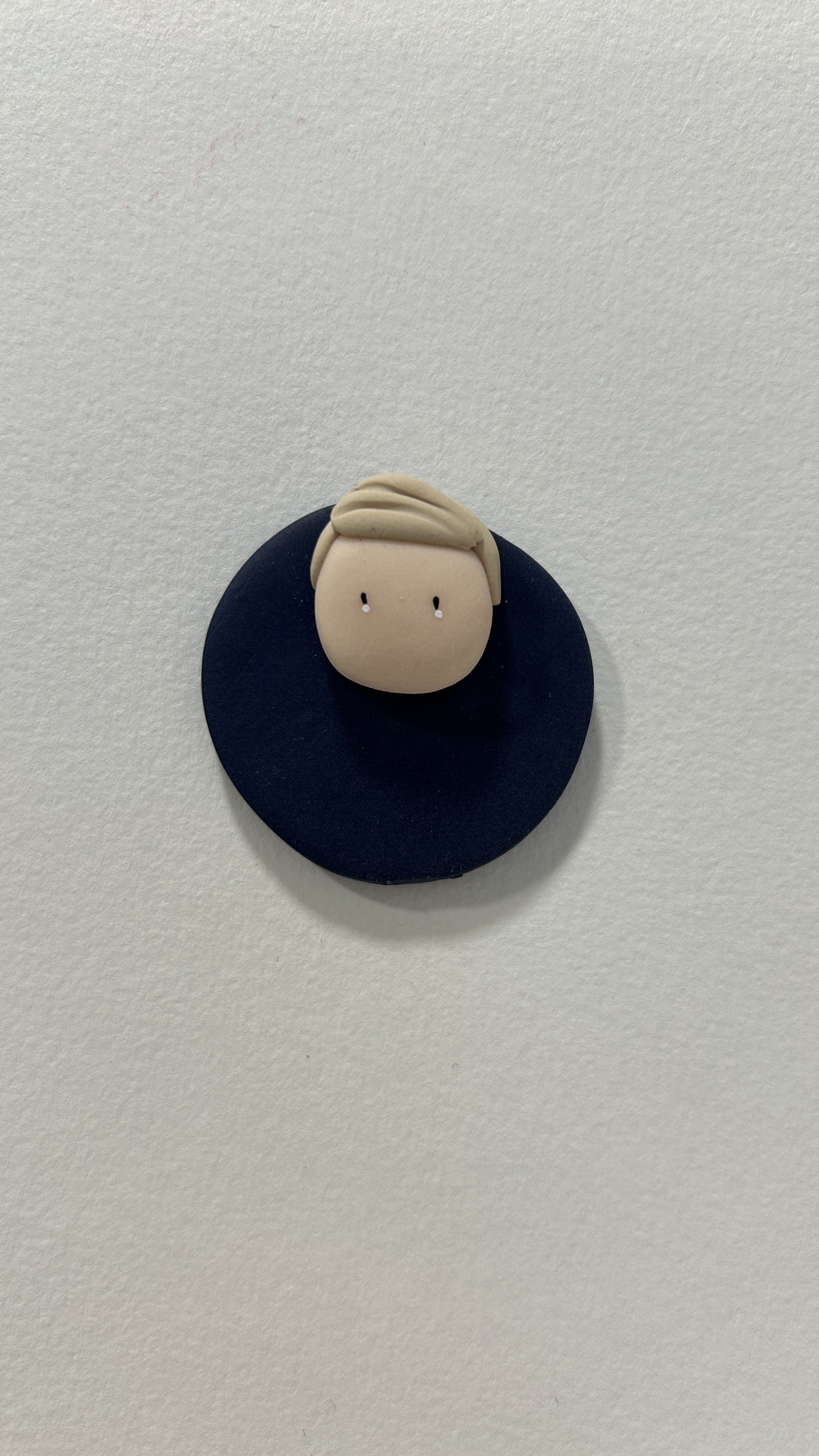 Chaque aimant est entièrement réalisé à la main et représente un petit visage délicatement modelé, aux traits simples et tendres. Il est monté sur un support rond aux couleurs douces et peut être personnalisé avec le prénom ou le surnom de votre choix.