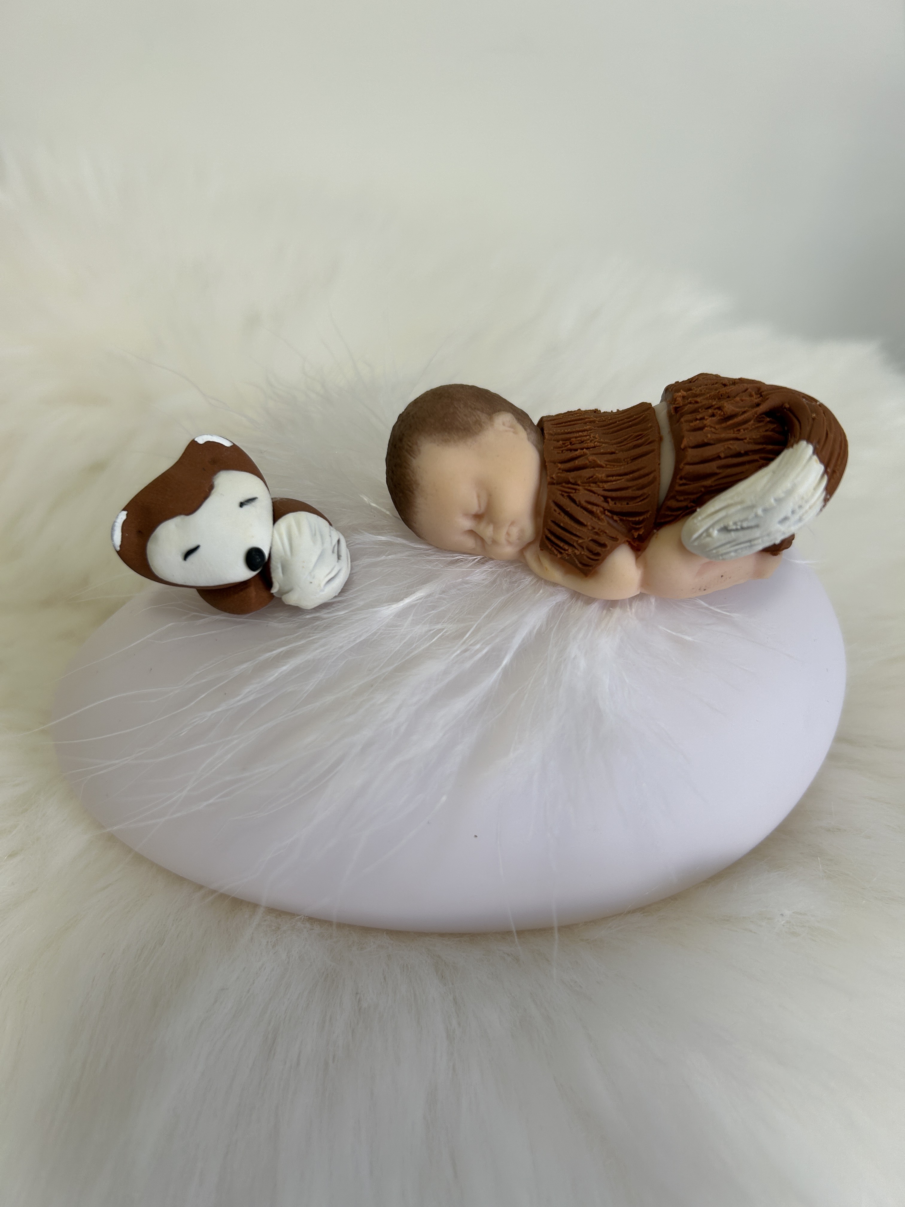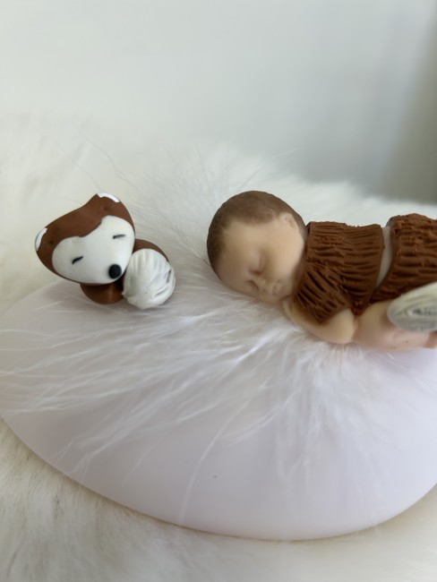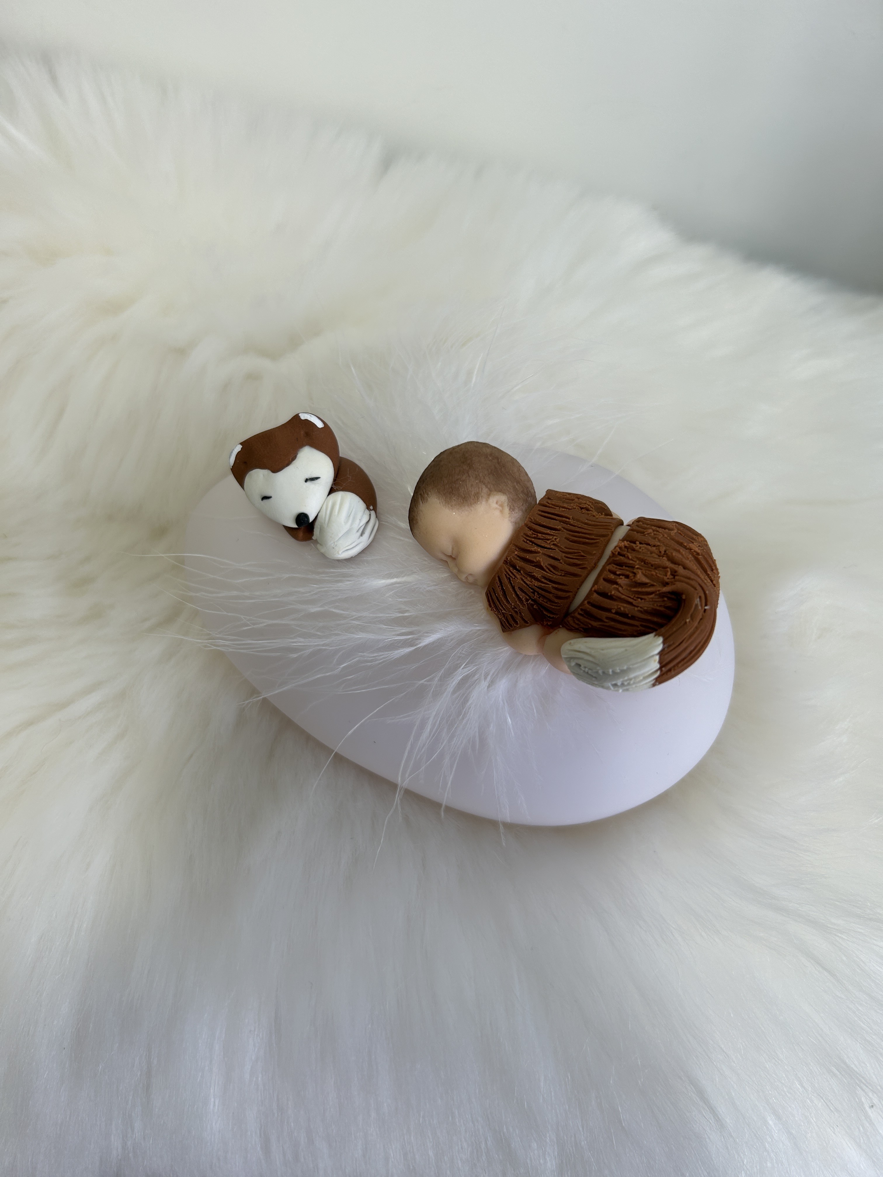 Cette veilleuse artisanale met en lumière un adorable bébé endormi, délicatement modelé à la main, vêtu d’une tenue inspirée d’un petit renardeau. À ses côtés, son compagnon renard veille paisiblement, créant une atmosphère chaleureuse et rassurante dans la chambre de bébé.