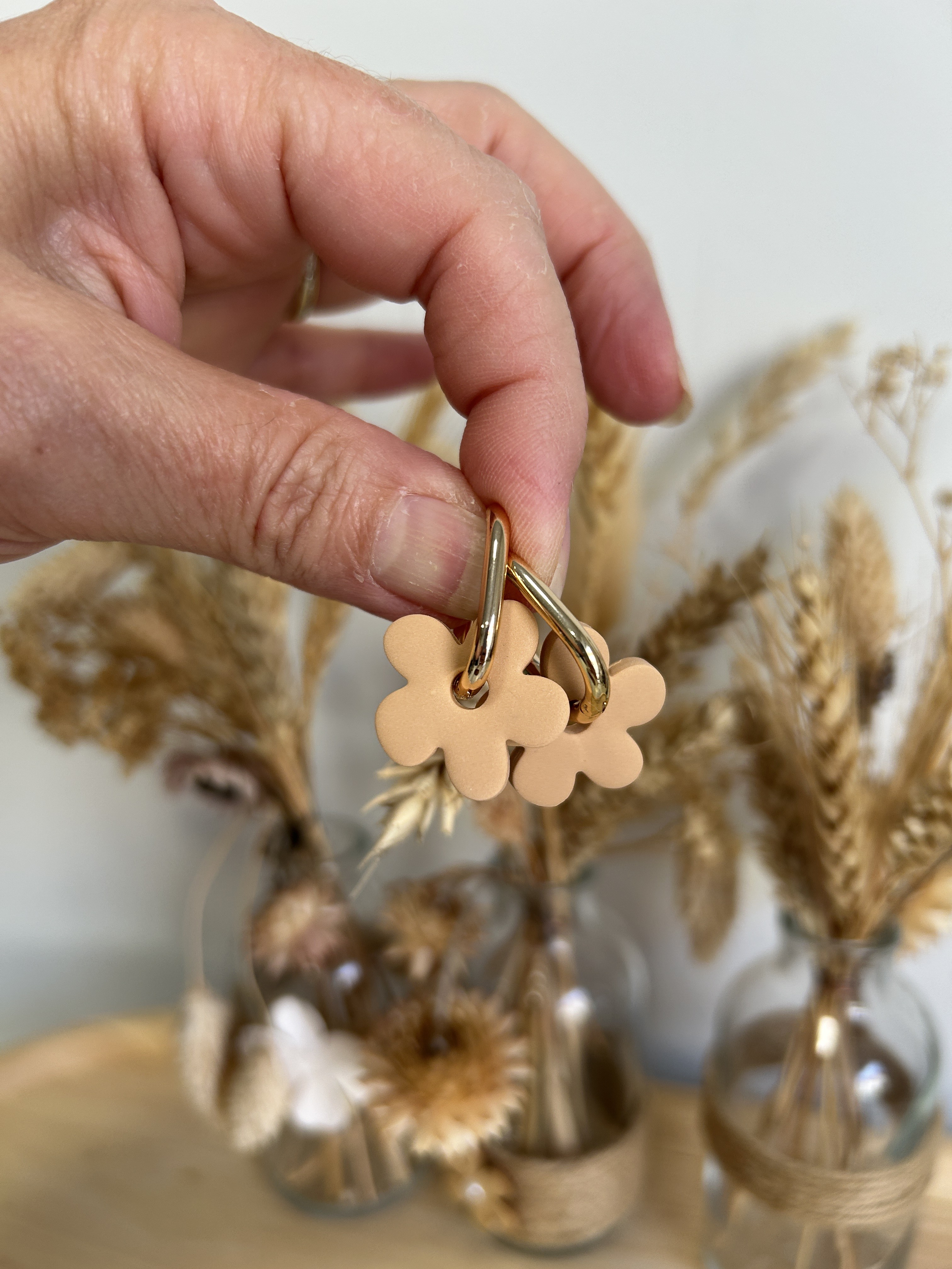 Boucles d’oreilles fleurs interchangeables - Modèle Cappuccino