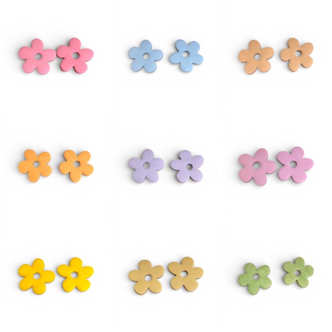 Fleurs en pâte polymère déclinées dans plusieurs coloris doux et lumineux :