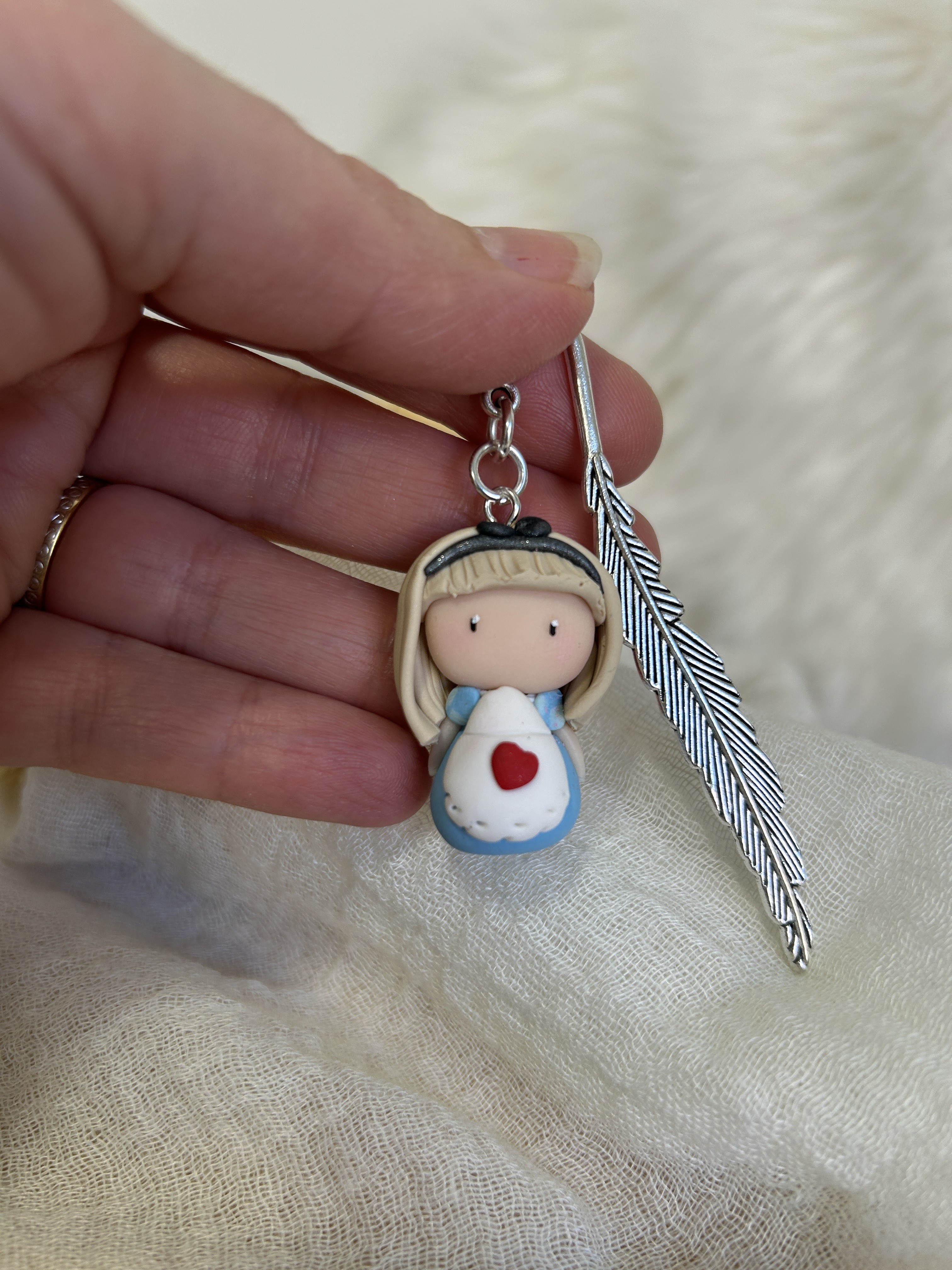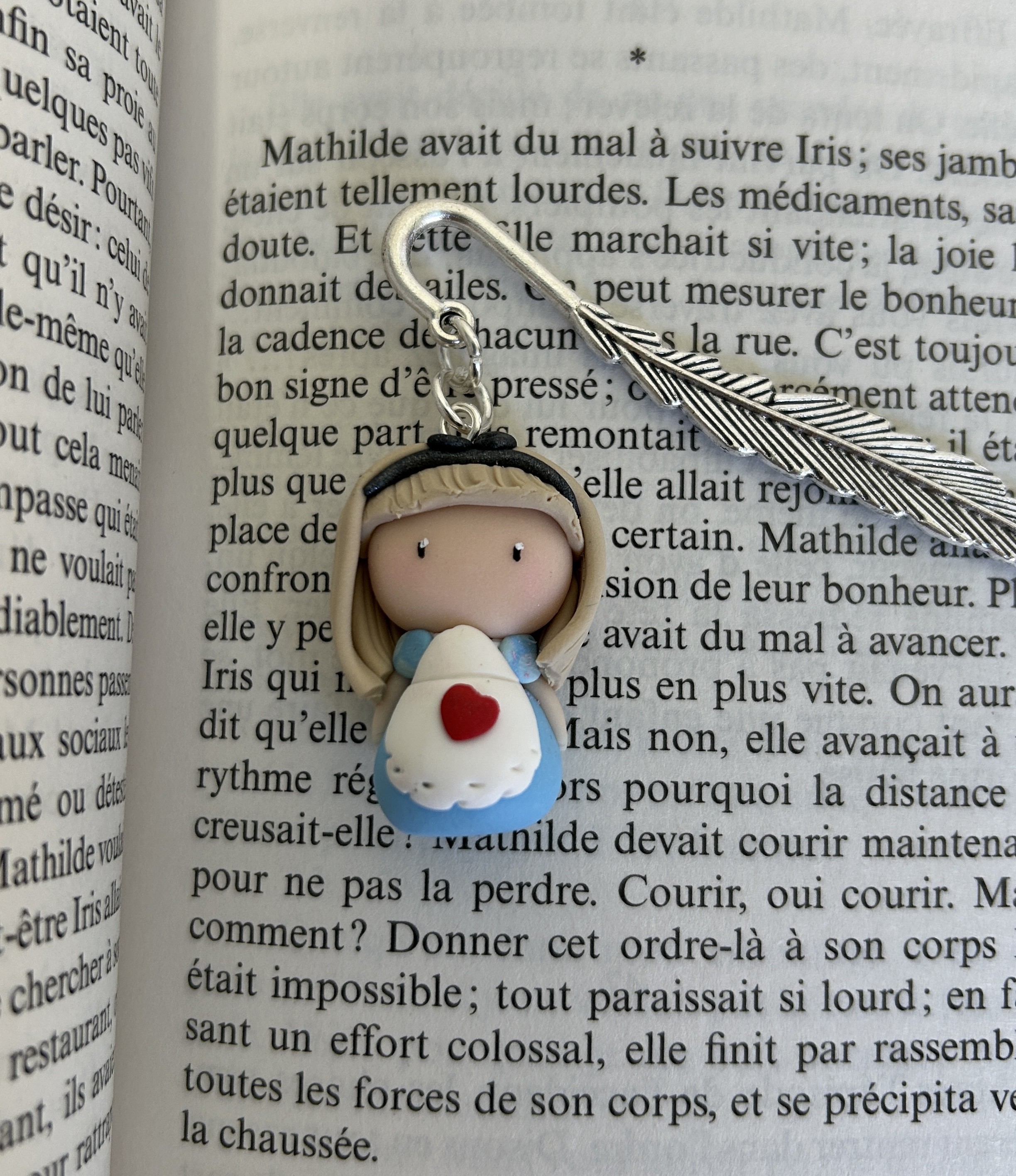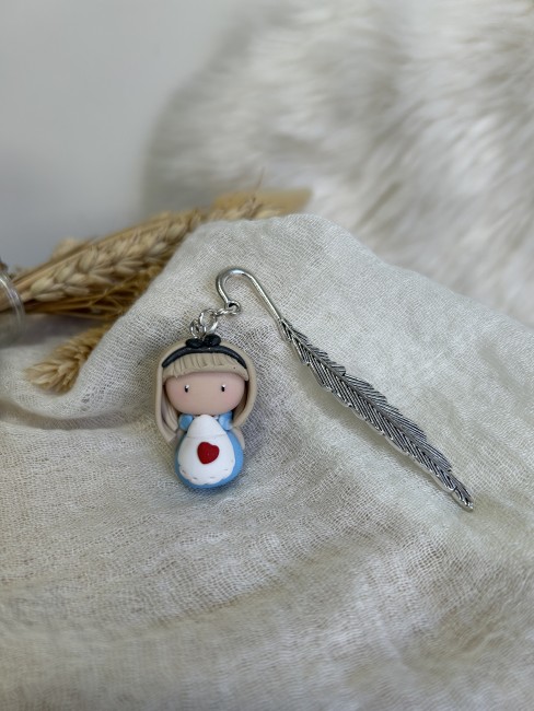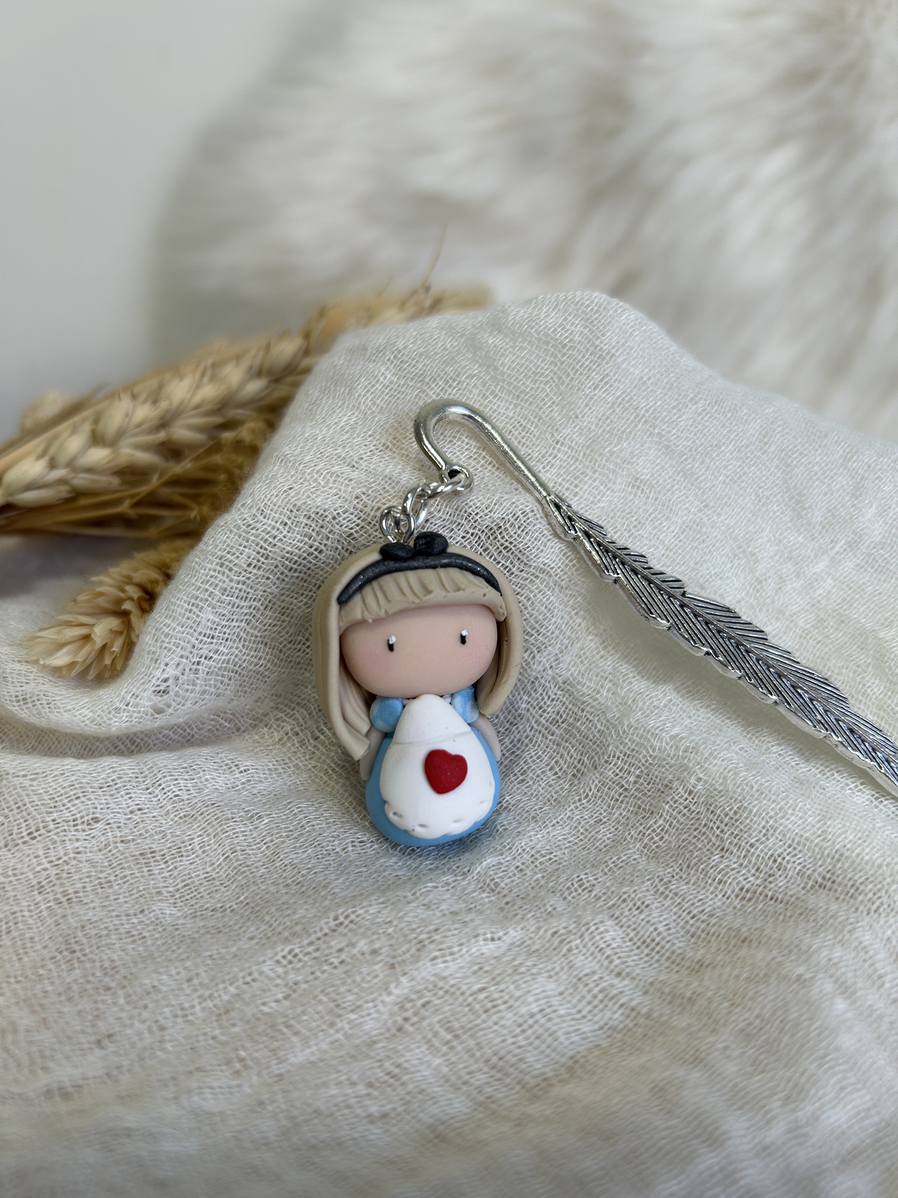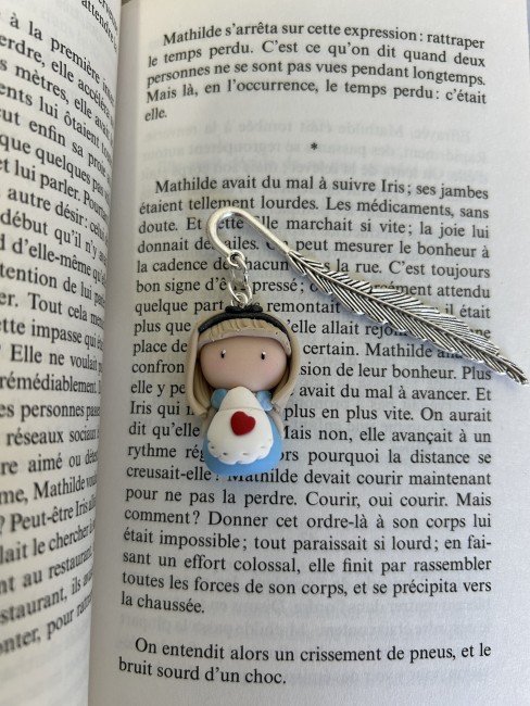 Alice est une Compagne de lecture délicate et apaisante, qui veille avec tendresse sur tes instants de lecture. Avec sa robe bleue douce et son petit cœur rouge posé comme un secret, elle incarne la sensibilité et la douceur.