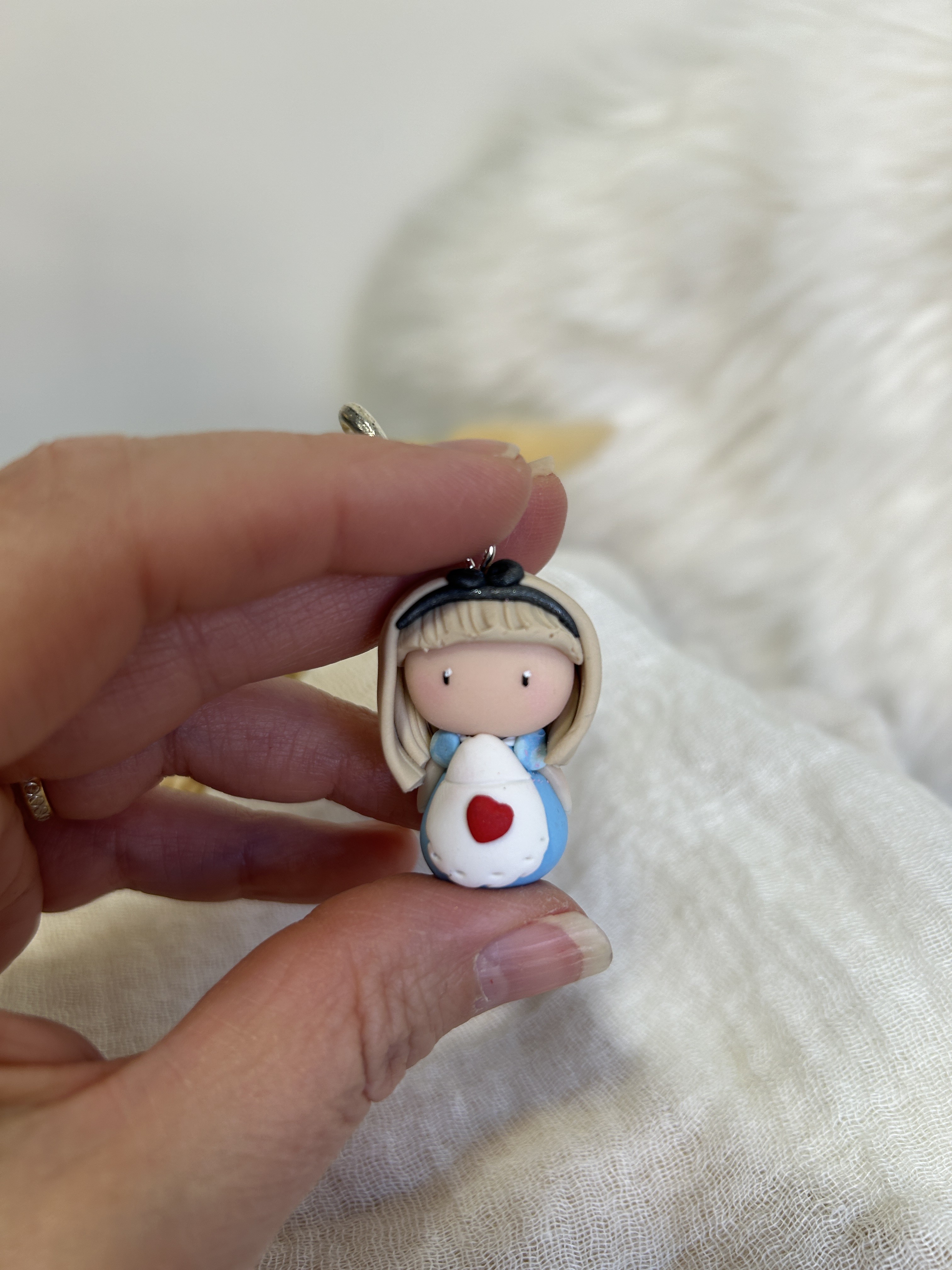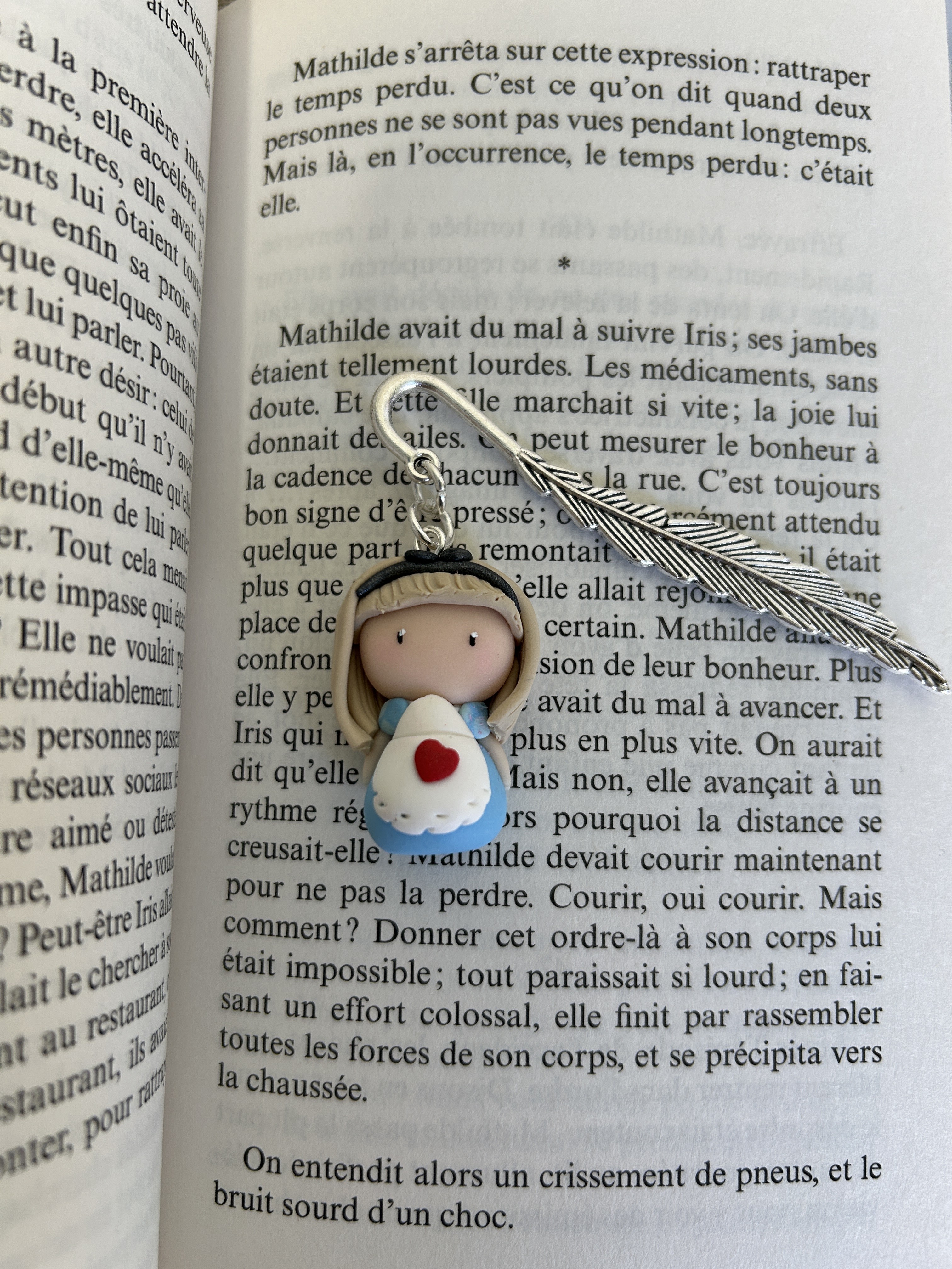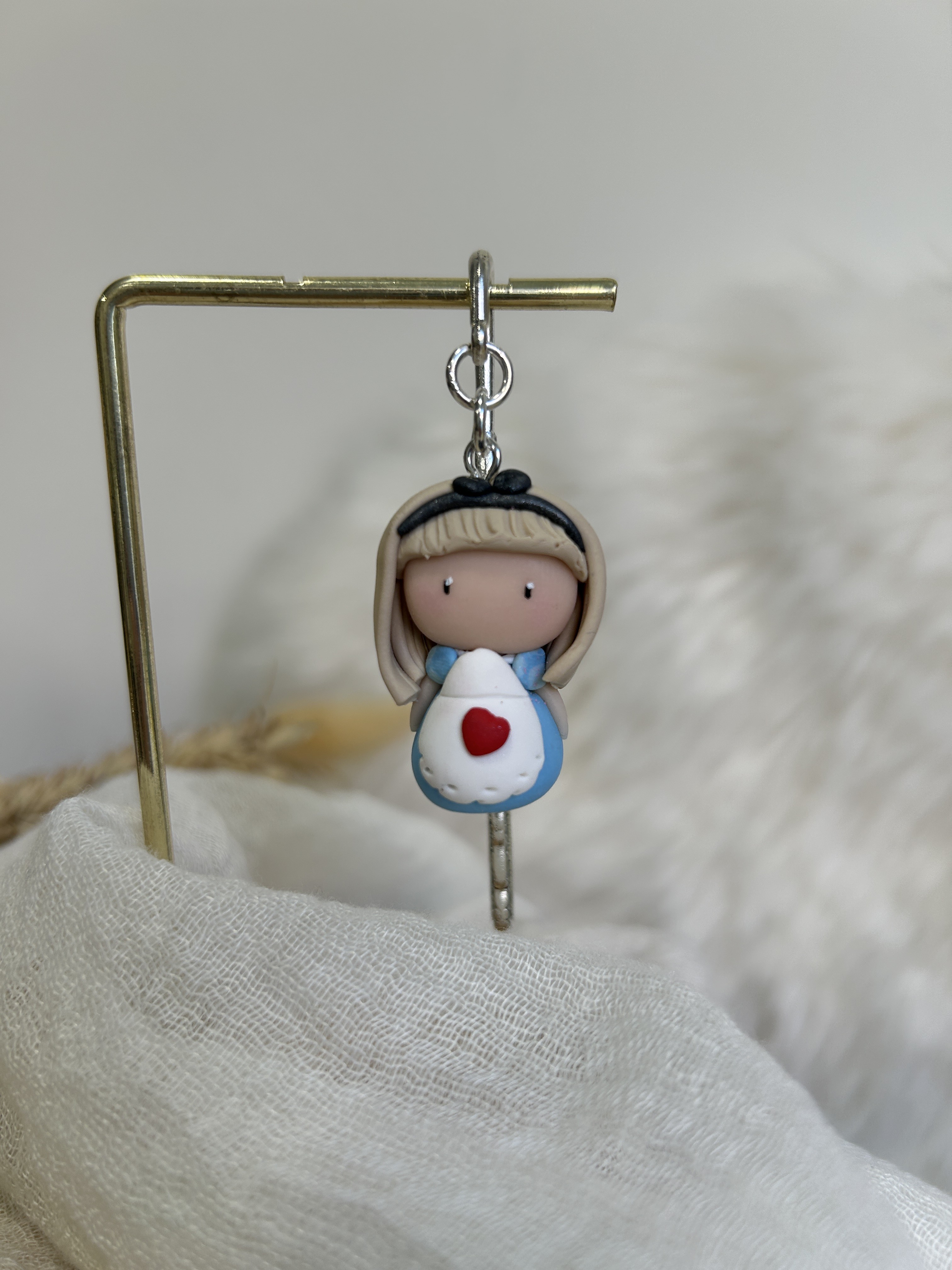 Alice est une Compagne de lecture délicate et apaisante, qui veille avec tendresse sur tes instants de lecture. Avec sa robe bleue douce et son petit cœur rouge posé comme un secret, elle incarne la sensibilité et la douceur.