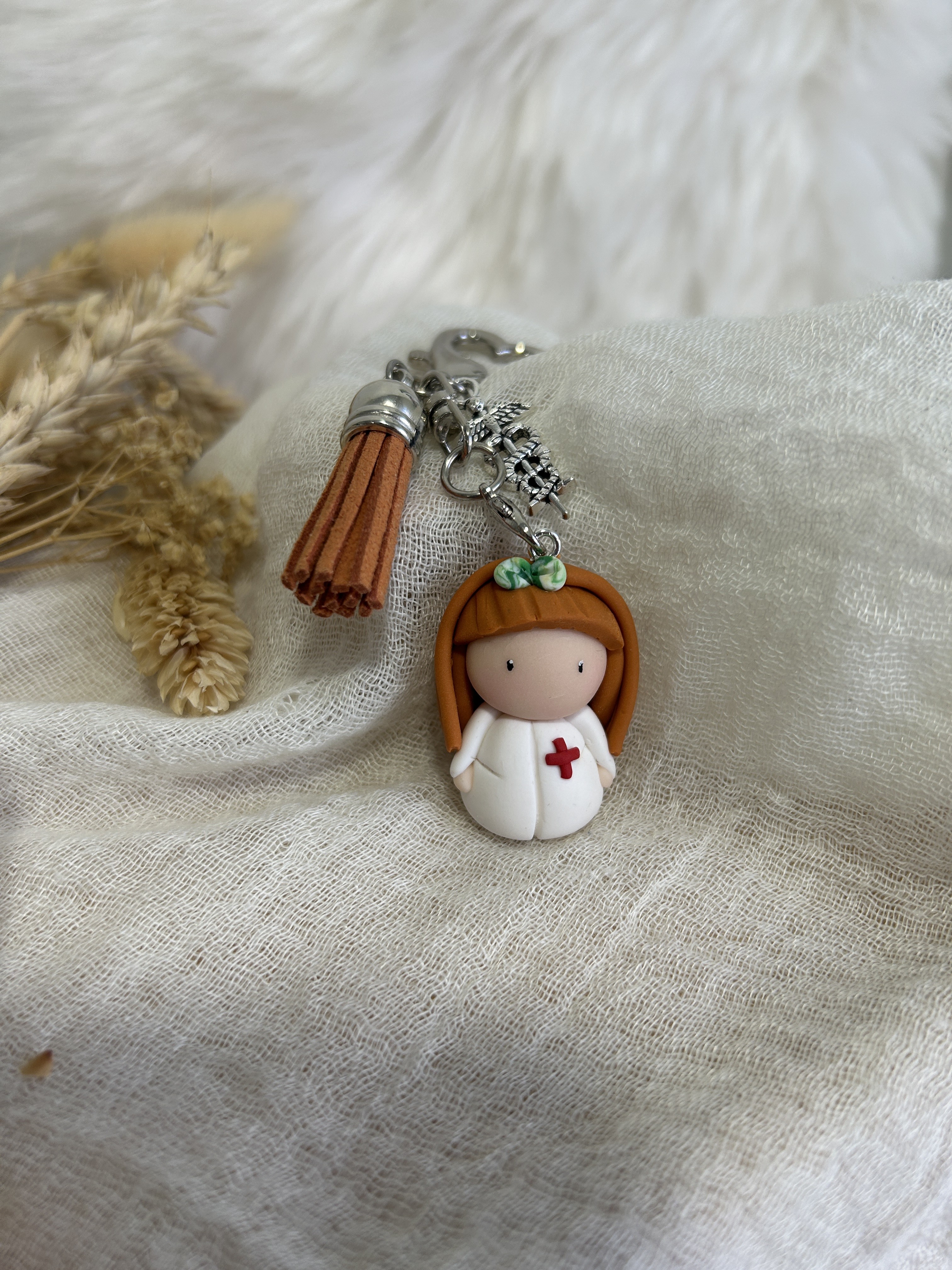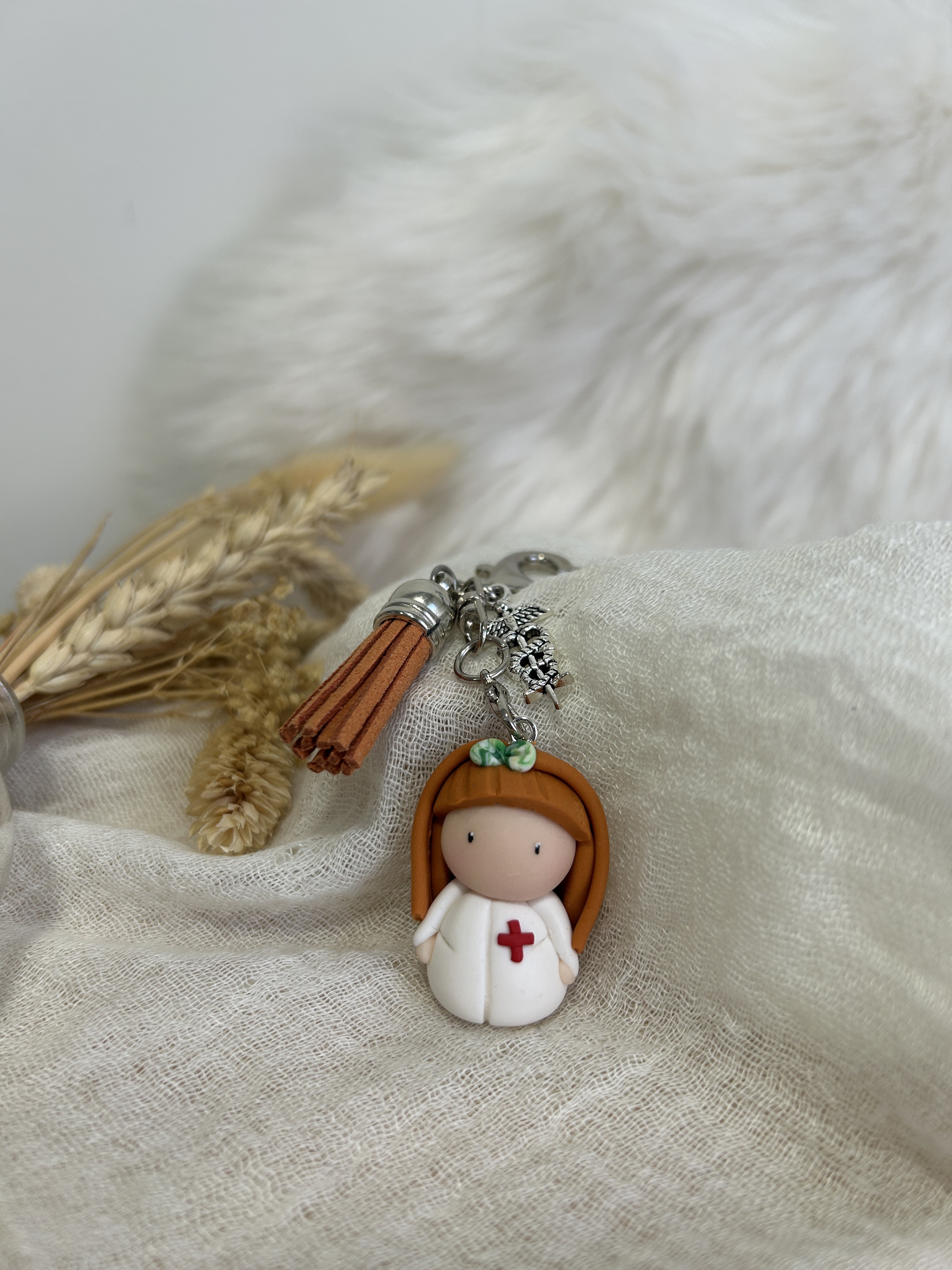 Apaisante et rassurante, elle accompagne ton quotidien comme une présence discrète, toujours là pour veiller sur toi. Son pompon coloré et ses breloques apportent une touche moderne et lumineuse à cet univers tendre.