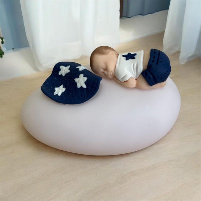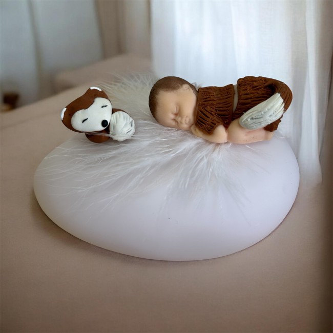 Veilleuse bébé artisanale personnalisée au prénom de bébé– bébé endormi sur une plume