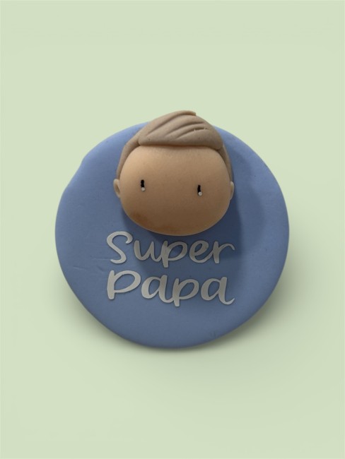 Magnet "Super Papa" – Aimant décoratif pour frigo et tableau magnétique. brun fond bleu