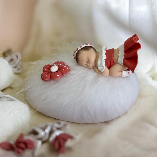 Veilleuse bébé artisanale – bébé endormi « Chut… Je rêve… », robe rose