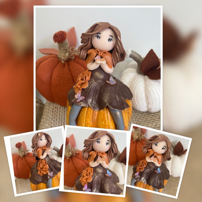 Poupée et son bouquet de coquelicots, cheveux blonds