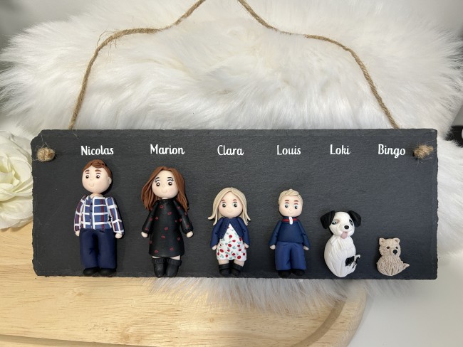 ardoise famille, personnages en fimo